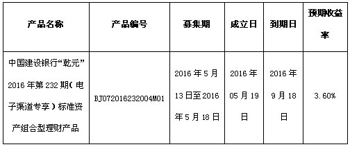 根据与投资者的约定,现将中国建设银行北京市分行理财产品成立情况信息进行披露: