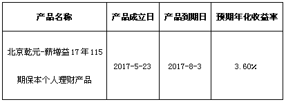 关于北京乾元-薪增益17年115期保本个人 理财产品成立的公告