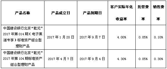 根据与投资者的约定,中国建设银行发行的下列理财产品已经到期并完成资金兑付,现将有关情况公告如下: