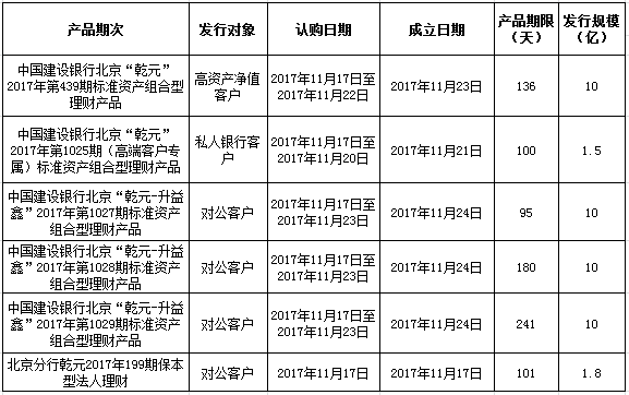 中国建设银行北京市分行定于2017年11月17日发行理财产品,现将相关发行情况公告如下: