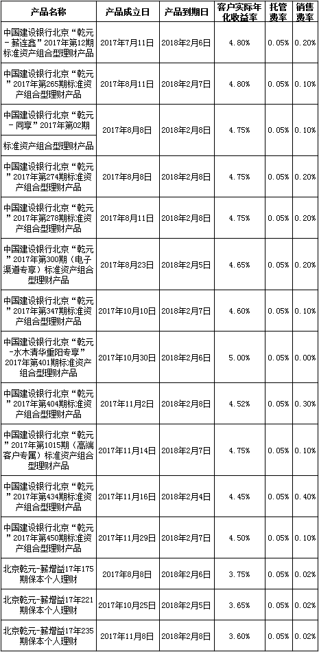 根据与投资者的约定,中国建设银行发行的下列理财产品已经到期并完成资金兑付,现将有关情况公告如下: