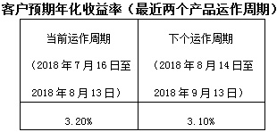 下个运作周期客户预期年化收益率于2018年8月14日(含)开始执行。