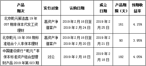 建行北京市分行理财产品发行公告2019年2月18日