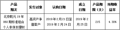 中国建设银行北京市分行定于2019年2月21日发行理财产品,现将相关发行情况公告如下: