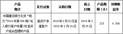 建行北京市分行理财产品发行公告2019年2月22日