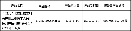 “乾元”北京区域定制资产组合型保本人民币理财产品(按月开放型)2013年第6期