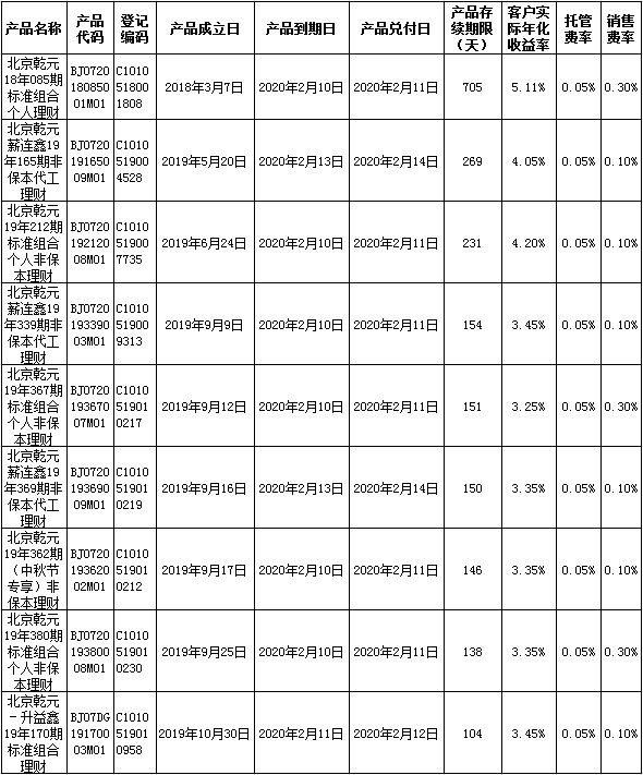中国建设银行理财产品终止及清算公告2020年2月14日