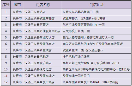 汉堡王建行龙支付、云闪付APP、银联手机闪付活动门店如下: