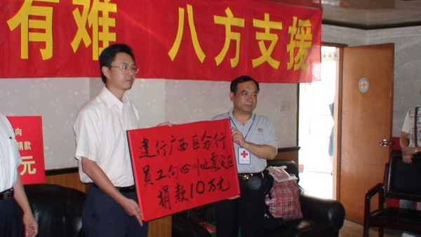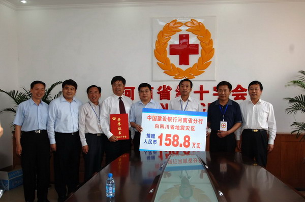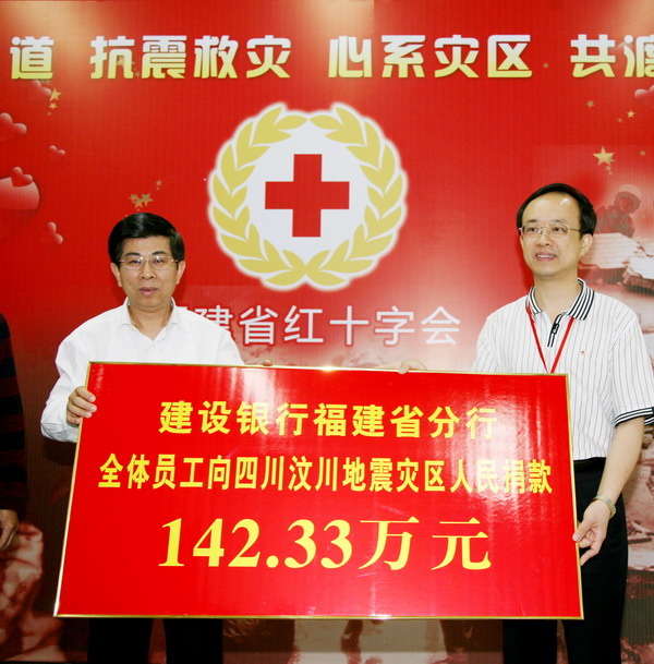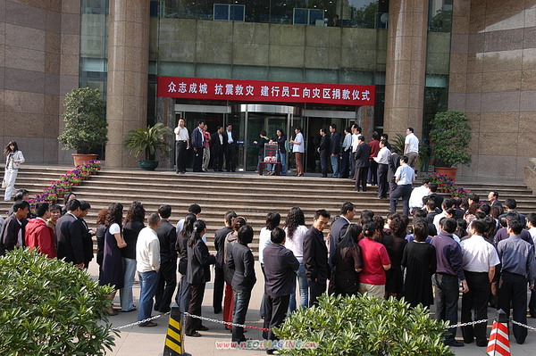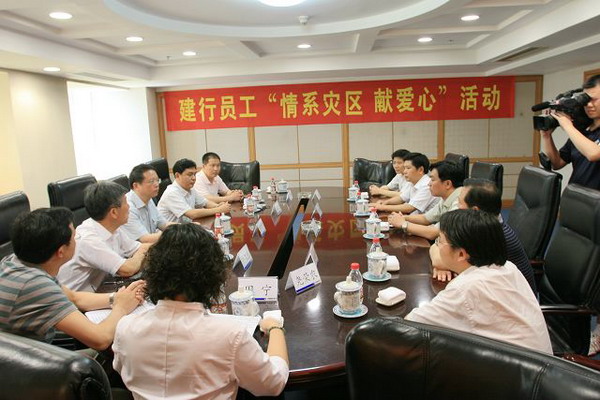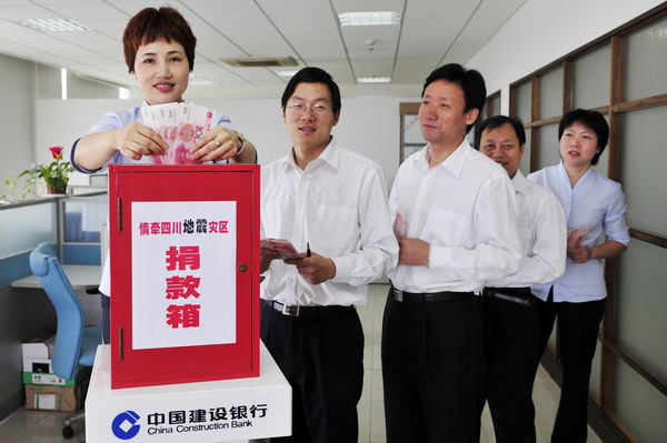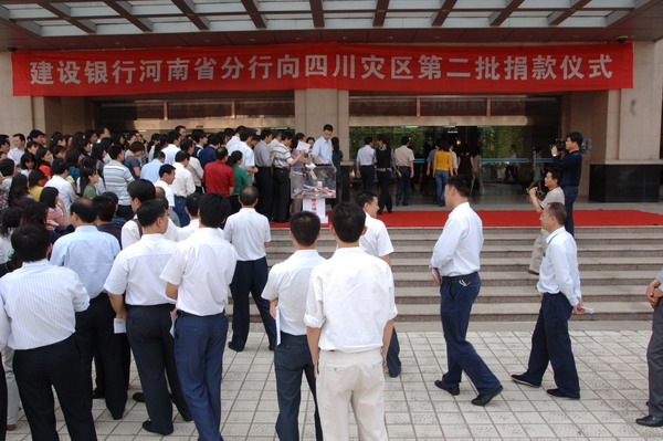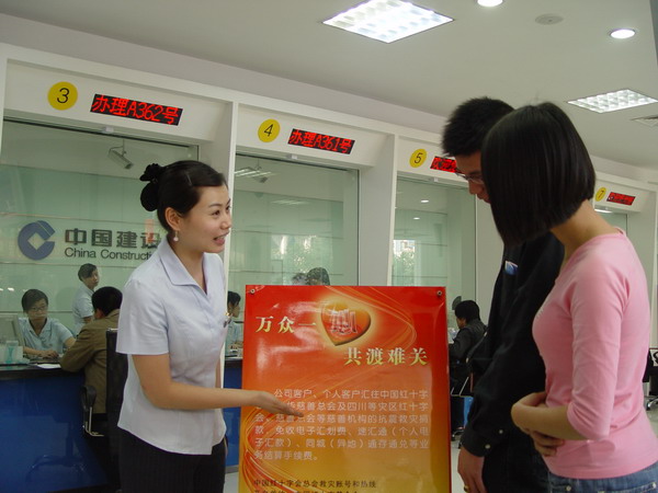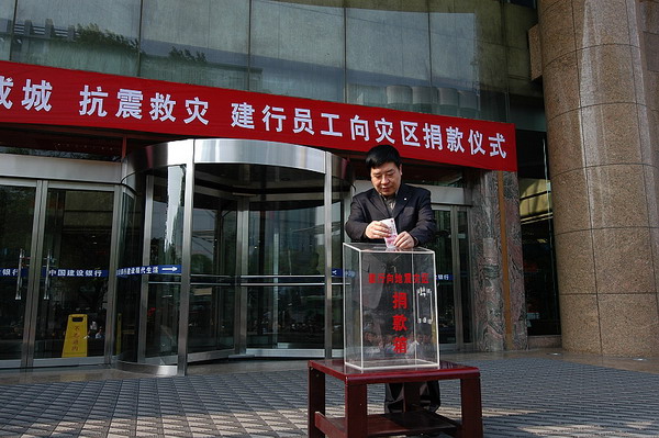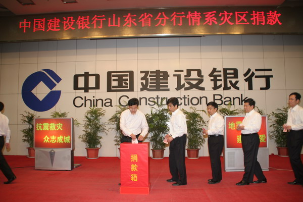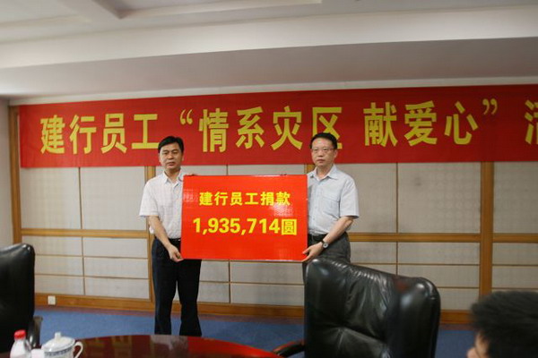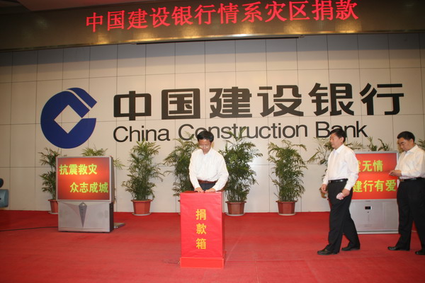5月12日下午,四川汶川发生7.8级强烈地震后,中国建设银行党委高度重视,迅速研究部署全行开展抗震救灾工作。从总行到分行,从高管层到基层员工,从后台保障到一线网点,全行30万员工紧急动员,投身到灾害紧急救助当中,充分显示了“一方有难、八方支援”的精神,体现了建设银行作为大型国有控股商业银行认真践行科学发展观,关注民生,积极履行企业社会责任的风范。