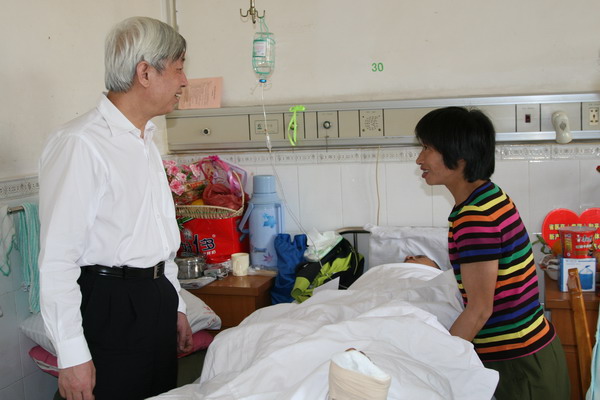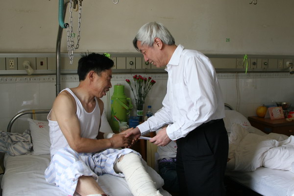 5月13日下午,中国建设银行行长张建国带领抗震救灾工作组抵达四川灾区,指导当地分行开展抗震救灾工作,慰问受灾员工及家庭,配合当地政府提供及时高效的金融服务。 张建国行长到达四川后,立即与四川省政府黄小祥副省长联系,转达郭树清董事长及全体建行员工对灾区人民的关切之情,并当面转交了中国建设银行向四川省灾区捐款2000万元的支票。 随后,张建国行长一行先后来到第七支行和都江堰支行等基层网点,实地了解视察基层网点受灾情况,亲切看望身处灾区一线的基层员工及其亲属,并与他们一一握手,代表总行党委、董事会、监事会、高管层和全行员工向他们表示了关心和慰问。