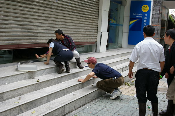 在余震中,都江堰支行员工撤离到街头办理业务。 都江堰迎宾路储蓄所营业。 拐棍行长-都江支行练兵。 绵阳分行是当地金融机构中最先恢复营业、为客户提供金融服务的银行,等待办理业务的客户排起了长龙。 绵阳分行紧急协商应对措施。 冒险从危楼内抢出现金。 曾益行长指导绵竹支行抗震救灾。 德阳分行联合公安机关,抗灾自救。 绵竹支行恢复营业后,为房屋被毁的汉旺分理处设立专柜,向受灾企业东方汽轮机厂提供金融服务。 在江油市水电气全部中断后,绵阳分行迅速驰援两台发电机和工作人员,确保当地网点正常营业。 甘肃分行: 陇南分行将ATM搬到临时办公场所恢复服务。 陇南分行抗灾指挥中心现场指挥。
