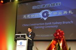 台上嘉宾与中国建设银行代表团举杯共祝中国建设银行悉尼分行隆重开业。