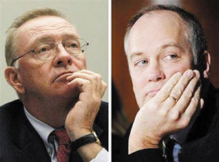 房利美总裁奴德(左)与房地美总裁塞伦(右)面对美国的房地产危机无可奈何。