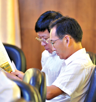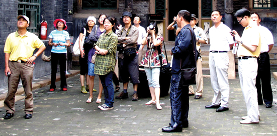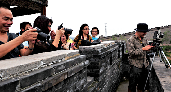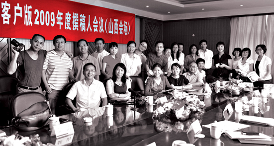 2009年夏末,客户版撰稿人会议在山西召开,参会人员有些是建行报十几年的老作者,有些是本年第一次投稿的新人;有专职文字工作者,有业务管理者,有通讯员,也有漫画家和专业摄影师,对于版面策划、栏目定位以及文章的撰写,大家直言表达,互换意见。会议期间,还组织了民俗采风活动,摄影作者成了最忙碌的人,他们时刻搜寻着的风景,“扫射”着参会者,用镜头语言为大家创作出了一场视觉盛宴;而很多善敲电脑的文字作者们,当他们拿出一台台单反时,谁想到也是那么的一板一眼。