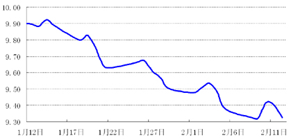 由于春节放假,金融市场走势回顾各部分的日期截取不同:货币市场和债券市场是28-2月21;外汇市场中人民币市场是2月8-2月12,外币市场是2月8-2月19;商品市场中国内黄金价格为2月8-2月12,国际金价和原油价格为2月8-2月19