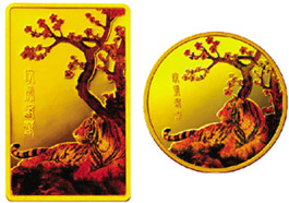 虎年福禄寿禧财金钱:10克、30克,一套5枚