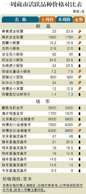 邮币卡市场继续呈歇夏状态,但市场热点并不缺乏,邮市中的产品票和第二轮生肖票走强,第三版人民币也现上扬。