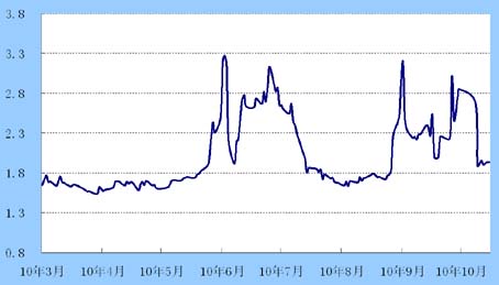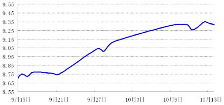 货币市场:随着两节的结束,资金面紧张局面明显缓解。截至1015 R007加权平均利率报1.9348%,较上周下降74.82个基点
