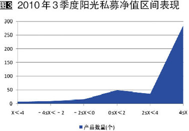 从产品净值增长率分布区域(图3)可以看出,本季度阳光私募产品的收益增长区间分布主要集中在4%以上,数量占比为70.54%