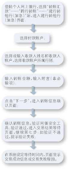 记者登陆建行个人网银,通过跨行转账建行转他行(加急)功能进行建行向招行转账操作,按界面提示填写好付款账户、收款人姓名、收款人账户,然后用鼠标拖拽选择付款账户开户行:招商银行股份有限公司,填写转账金额及相关留言信息,点击进入确认转账汇款界面,看到了汇款金额1500元和手续费7.5元等信息,再点击,界面显示转账成功。记者记下时间:20101023(星期六)181627秒。接着又在转账汇款其他转账功能结果查询中,查询建行转他行(加急)交易结果,显示转账成功。此刻,记者签约的建行手机短信银行发来两条信息,一条显示账户变动1500元,一条显示账户变动7.5元(转账手续费)。