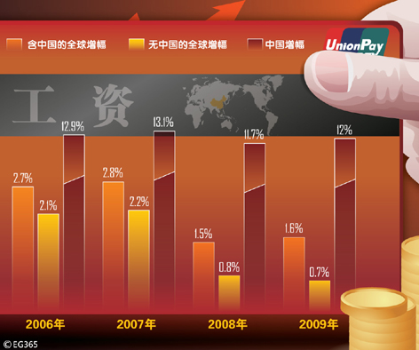 日前,国际劳工组织(ILO)在日内瓦最新发布了涵盖全球16亿工薪阶层的《全球工资报告2010-2011》。报告显示,金融危机后全球工资增速几近折半。而中国增速 “引涨全球工资,超欧美国家达5倍之多。图片作者:EG365/CFP