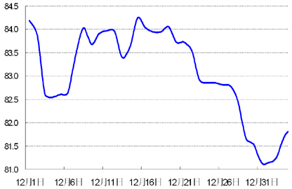 货币市场:上周受央行加息和银行年末备付金需求,资金总量较为紧张,前四天货币市场回购利率连创新高,周五回落,其中7天和1月降幅最为显著