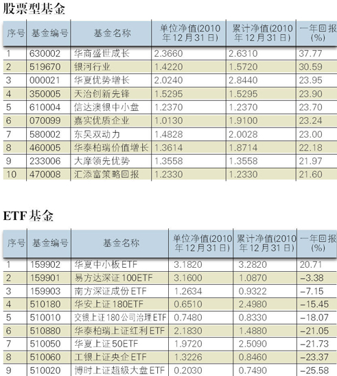 股票型基金收官2010年,华商完胜华夏。