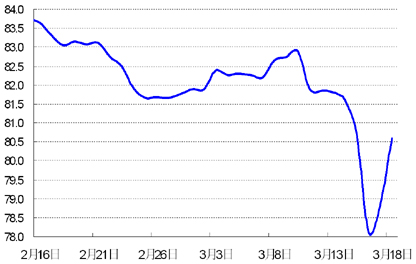 上周日本大地震加大了外汇市场的波动,欧元对美元突破1.40美元,美元对日元在七国集团的干预下从历史低点77.16反弹到80日元上方,人民币对美元日间波动受客盘影响较大