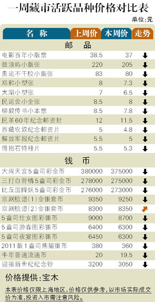 5月上旬,邮币市场突然变得风声鹤唳,银价的快速跳水和近期热点新邮的下台阶回调,令盼望“红五月”的市场投资者遭遇当头棒喝,所谓“希望越大,失望也更大”是也。邮市:热点品种继续下挫,不少品种跌幅进一步增大,尤其是市场热门的小版张全线回落,如“崆峒山”、“青铜器”、“隶书”、“昆曲”和“资本市场”小版张分别下沉到205元、95元、65元、27元和63元,而“世博会”双连小型张创出39元新低,惟“庚申猴”邮票中流砥柱般地坚挺在11800元。币市:银币大幅下挫,已套牢不少短线投机客。2010版1盎司“熊猫”银币下跌至370元,与银价相比因跌幅偏小而现成交凝滞。彩金银币盘旋,价格变化不大,如“贵妃醉酒”彩金币依然维持在65000元附近。