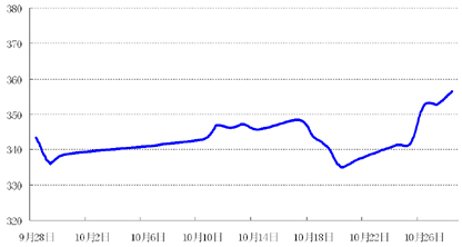 货币市场:近三周,央行在公开市场实现净回笼,加之10月末企业陆续开始缴收利税,银行间市场资金价格上周有所上涨,7天回购利率涨幅超过150BP,收于5.10%