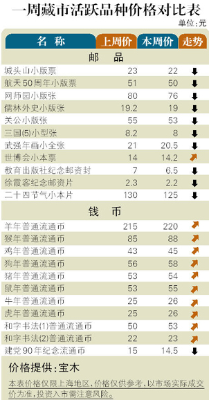 临近春节,藏市人流开始下降,大多数投资者无心恋战,长假情结若隐若现。邮市:近一周市场依然围绕壬辰龙版张进行炒作,但从上周初的逐步走高,到周中的创新高,再到周末的跳水下滑,市价也由235元攀升到330元的发行以来最高价,至上周末又回到250元。可以预料,该张在春节前后振荡在所难免。币市:金银币市场热点稀疏,尤其是不少前期强势品种抛压一直存在,令币商不敢承接,尽管开价变化不大,但真正成交价也仅70%。新面世的2012熊猫全套(1盎司规格之下)金币价格在21500元附近,成交并不活跃。