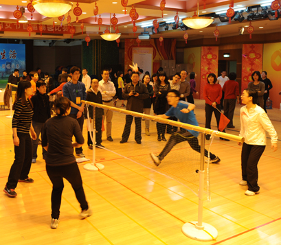 2012359日,建设银行总行本部在B2多功能厅举办 “庆三八展风采踢毽比赛。来自总行32个部门的240余名队员踊跃参加了个人踢毽、多人踢毽和网式毽球三个项目的角逐。比赛中,选手们个个不甘示弱,尽展其能,纷纷拿出绝活和看家本领,踢、钩、挡、铲……只见她们膝若轴,腰如绵,身似猿,轻赛燕,五彩的毽子上下翻飞,令人眼花缭乱,目不暇接。此次活动不仅使广大职工在紧张的工作之余放松了心情,陶冶了情操,达到了强身健体的目的。