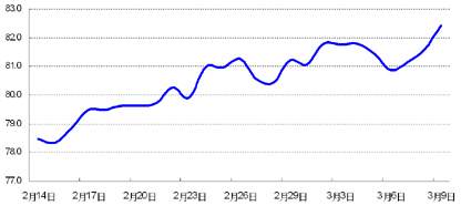 美国经济数据好于预期,美元指数站稳79一线,欧元兑美元周五报1.3113。受美元走强影响,美元兑人民币中间价上涨且波幅加大,周五报6.3073