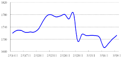 黄金价格先抑后扬。周初因美元走强且投资者担忧希腊债务危机,金价连续下跌;之后,随着希腊债务重组成功希望上升,金价小幅反弹