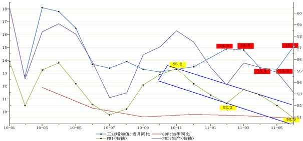 图5 GDP、工业增加值、PMI等指数变化