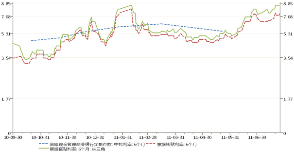 图6 国库现金存款招标利率和票据贴现利率