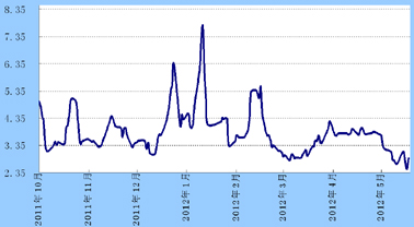 货币市场:央行年内第二次下调存款准备金率后资金面更趋宽松,为调节短期资金供给,央行公开市场连续两周净回笼资金共1420亿元,回购利率小幅上扬。7天质押式回购利率较前周上涨19个基点至2.8854%