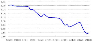 上周人民币兑美元即期汇价伴随中间价震荡下跌,创下五个月来低点;同时人民币兑欧元突破8元大关,创出近十年新高。受欧债危机拖累,欧元兑美元下跌至近两年低位1.25美元附近
