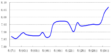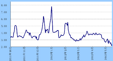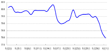 因欧债危机局势动荡,欧元兑美元上周下降83bps报1.2432美元。随着海外市场美元升值,人民币贬值,美元兑人民币升251bps报6.369元