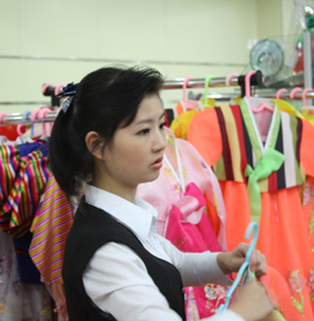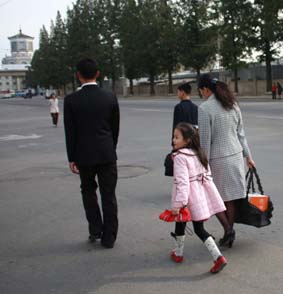 平壤市民并不是传说中的衣着蓝绿黄灰,如果你不非要把时尚和那些言过其实的名牌挂起钩来,很多朝鲜人的服装也是蛮漂亮的,尤其是那些少年儿童,和国内的孩子差别不大。学生们的校服也很有特色,男孩子类似于中山装,女孩子则都是短裙套装,和红领巾搭配起来非常漂亮。