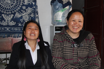 于是,俩姊妹从联合国一个项目得到4000元无息贷款。杨莉拿到这笔钱先跑到市场去买苗族老人家织的花椒布,还买来大米,打算招集几个姐妹到家里来做活,午饭就在这吃,然后她像经纪人那样把产品卖出去。12个已婚姐妹听说农闲时可以挣钱,就报了名。在这个松散的合作社组织里,杨芳是蜡染工艺师,杨莉是刺绣工艺师,俩姐妹当起了技术指导。