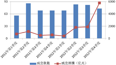 表1 2011年4季~2012年3季券商集合产品发行数量与首募规模