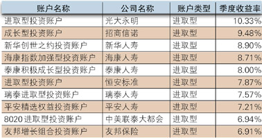 表4 2012年第4季度投连险投资账户收益表现TOP10