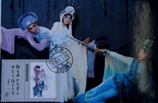 用戏剧作品与美术作品联姻来制作极限片是藏家的一大创造,在规则的允许下,寻找题材或主图相同的邮票和明信片来制作极限片,效果也出人意料。1989年9月发行的《当代美术作品选一》叶浅予的“白蛇传”一枚邮票贴越剧“白蛇传断桥相会”剧照,销“浙江杭州2”邮戳,效果很好。