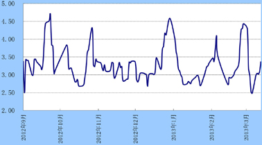 货币市场:上周央行公开市场净回笼资金440亿元人民币,呼应央行行长周小川明确表示的趋于稳健的货币政策。7天期回购利率上行88个基点至3.36%