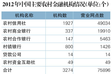 第二,新组建农村商业银行数量大大增加。截至2012年末,全国共组建农村商业银行337家,当年新组建125家,仍有农村合作银行147家,比上年减少43家,仍有农村信用社1927家,比上年下降338家。