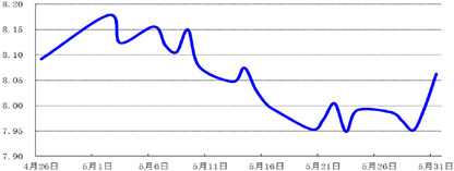 上周,人民币兑美元中间价延续上升态势,屡创新高,并于上周五报6.1796,突破6.1800整数关口,创2005年汇改来新高,较5月24日上涨0.11%;欧元兑美元上涨0.51%,报1.2995美元。