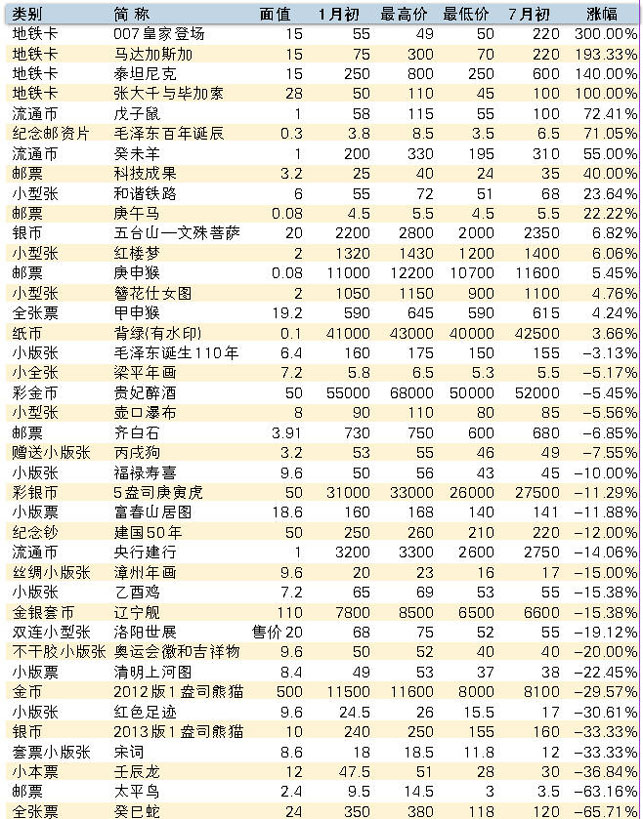 藏市上的大板块在上半年都出现了回调乃至走弱的现象,但其中的小版块依然有活跃表现,除了币市中的流通币板块走势稳定外,磁卡板块中的地铁卡则出现了骄人的表现,也是整个藏市中唯一逆势走强的板块。