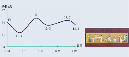 此外,邮市渐弱的另一个重要标志──产品票的热度下降在上半年也逐步显现,吸纳价格由前两年的涨多跌少变为了跌多涨少,且收购量也明显减少。如年初尚如火如荼的毛泽东题材邮票,到了6月份吸纳者就减少了三分之二,其中1983年发行的毛泽东诞生90套票年初价格一度跃上百元,但6月份的收购价格则下跌至75元,壶口瀑布小型张跌至85元,而年初的价格还在110元左右,JP44“毛泽东诞生百年则由8.5元回调至6.5元。当然,产品票仍是上半年市场的主流热点,也是成交最活跃的板块,这其中红色题材热度不减,收购品种继续小幅增多,惟部分品种的收购价格有所下降。