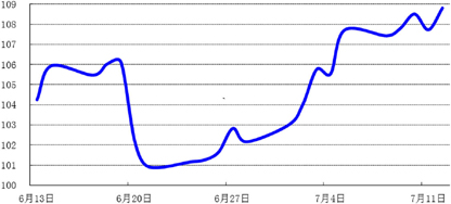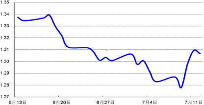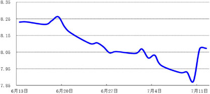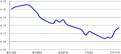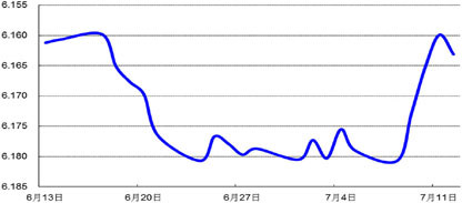 上周,美元兑人民币中间价连续下行,而即期价格走势却基本脱离中间价引导的方向,在6.12-6.15的区间内窄幅震荡。上周五,美元兑人民币中间价报6.1631元,较前周下行159个基点;即期价盘终收于6.1375元,较前周小幅上升0.08%